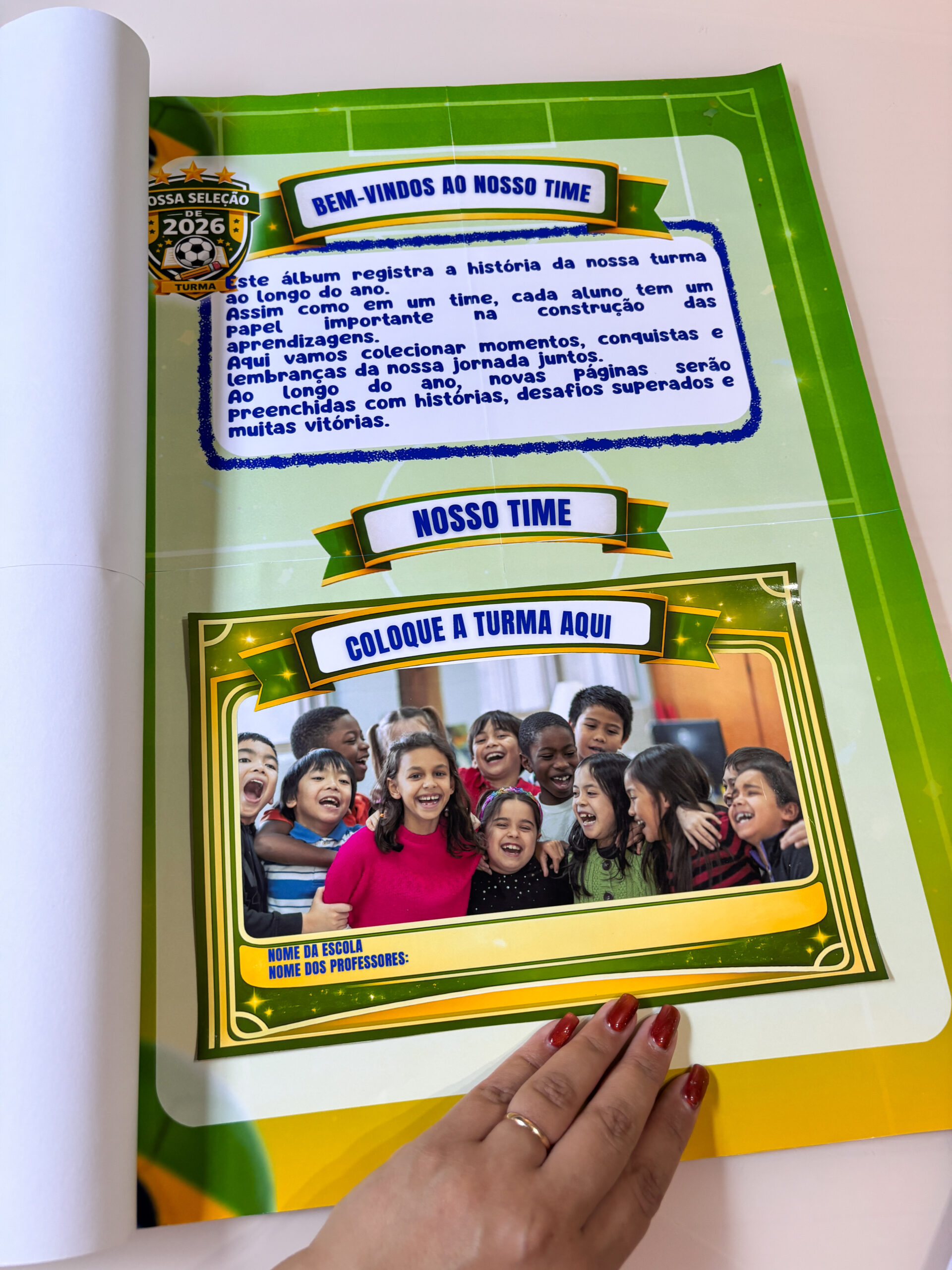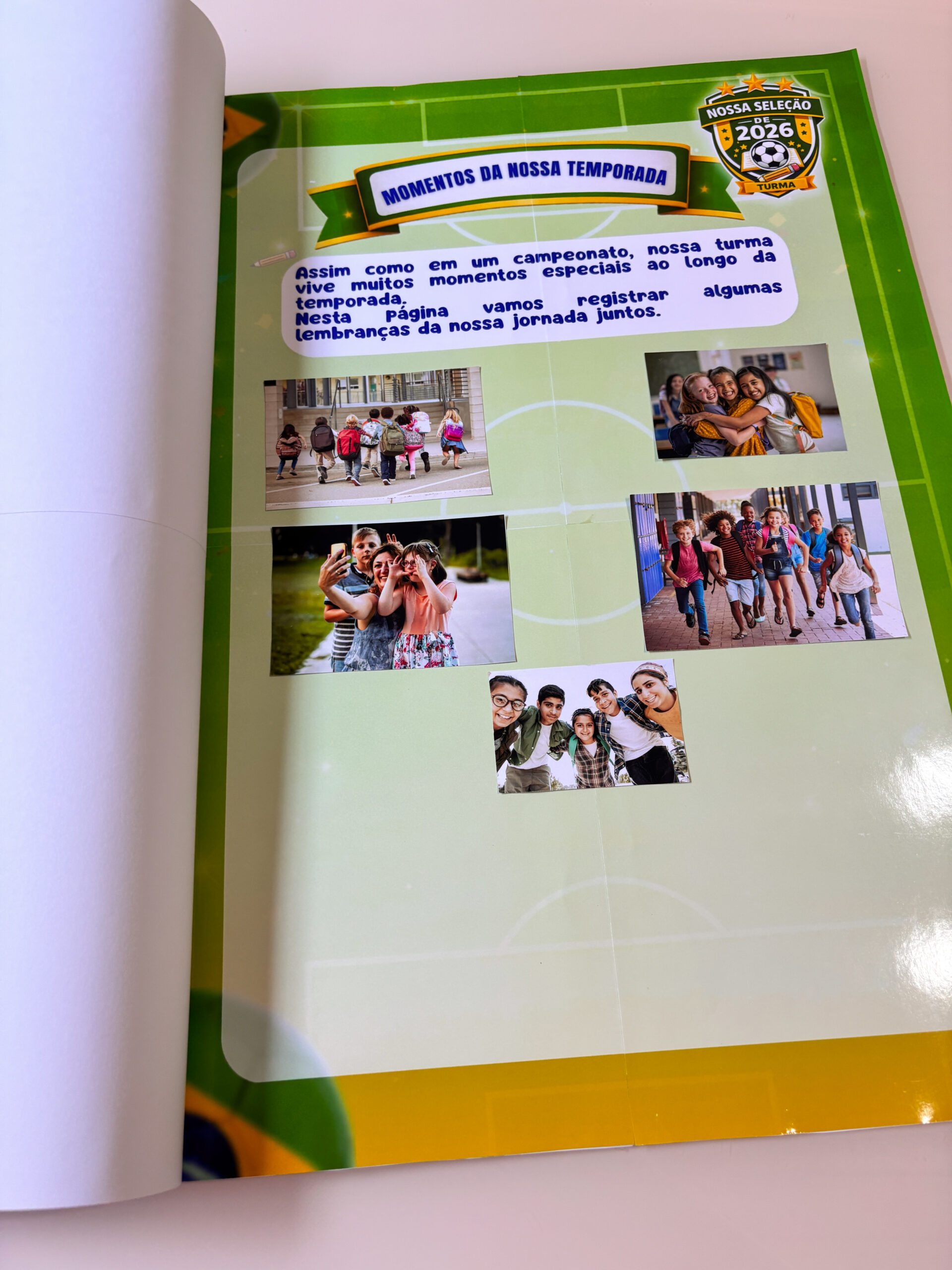 Imagine registrar todo o ano escolar em um álbum especial da turma, inspirado no clima da Copa do Mundo.