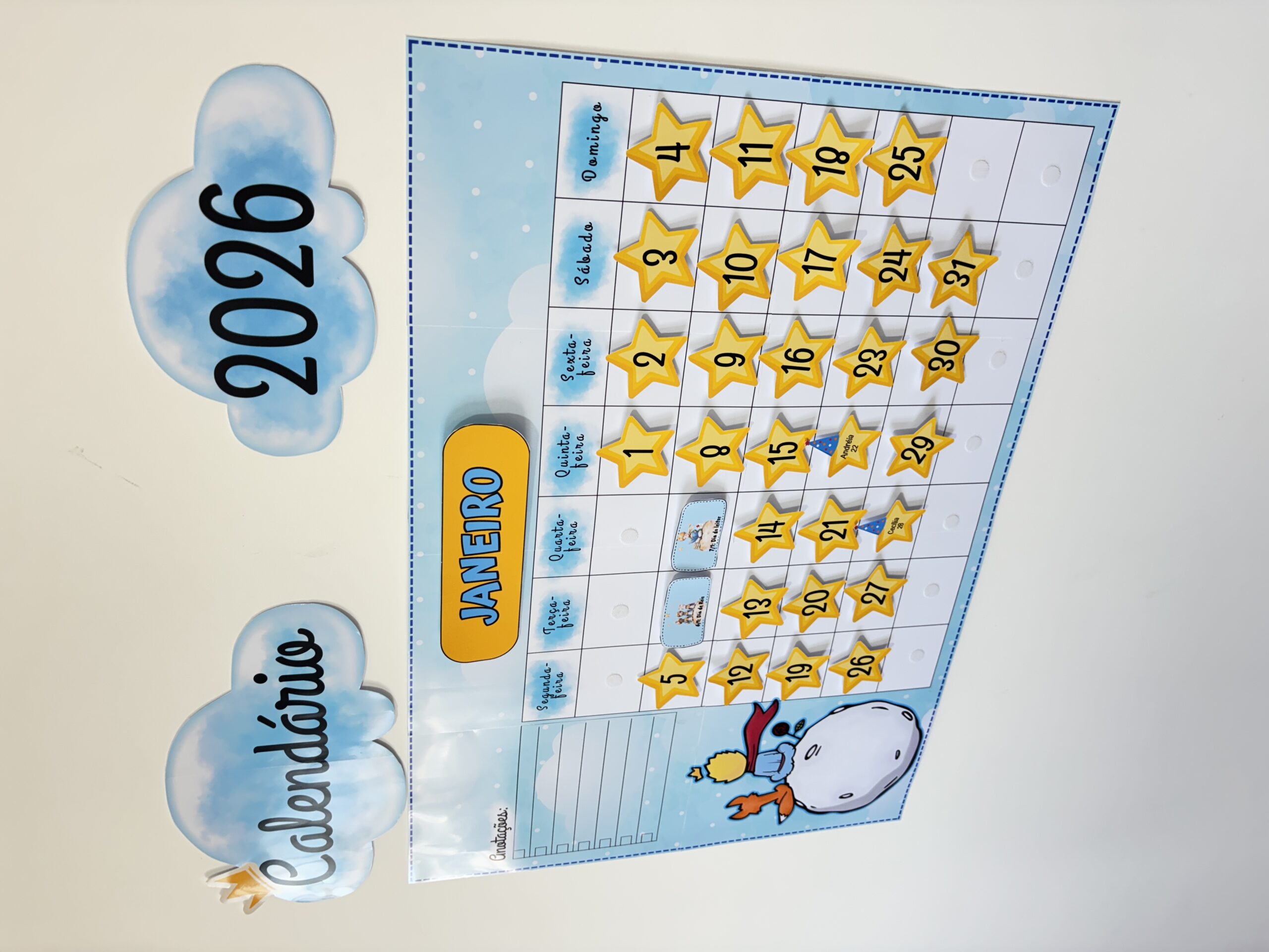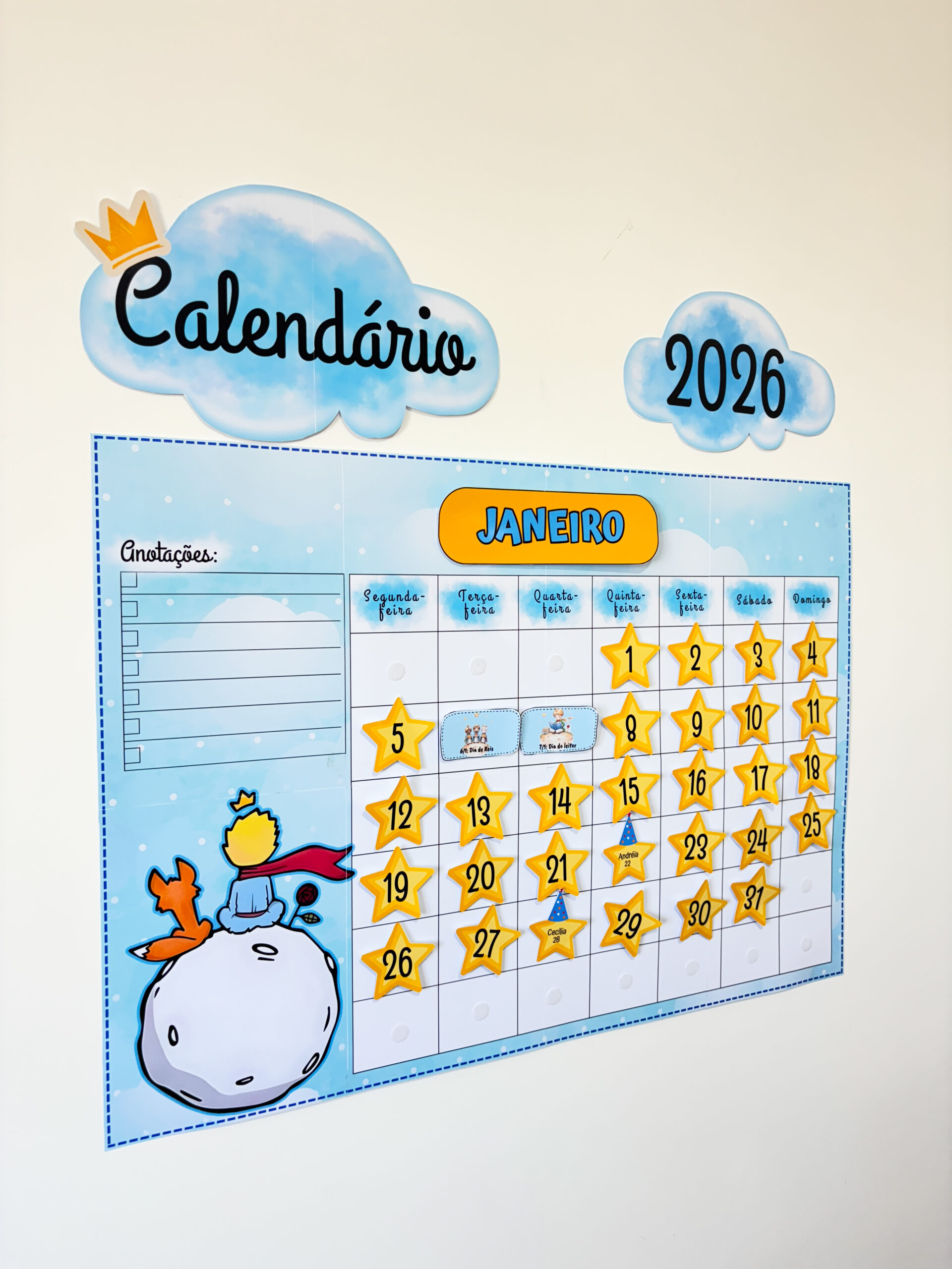CALENDÁRIO INTERATIVO 2026 – TEMA PEQUENO PRÍNCIPE ✨