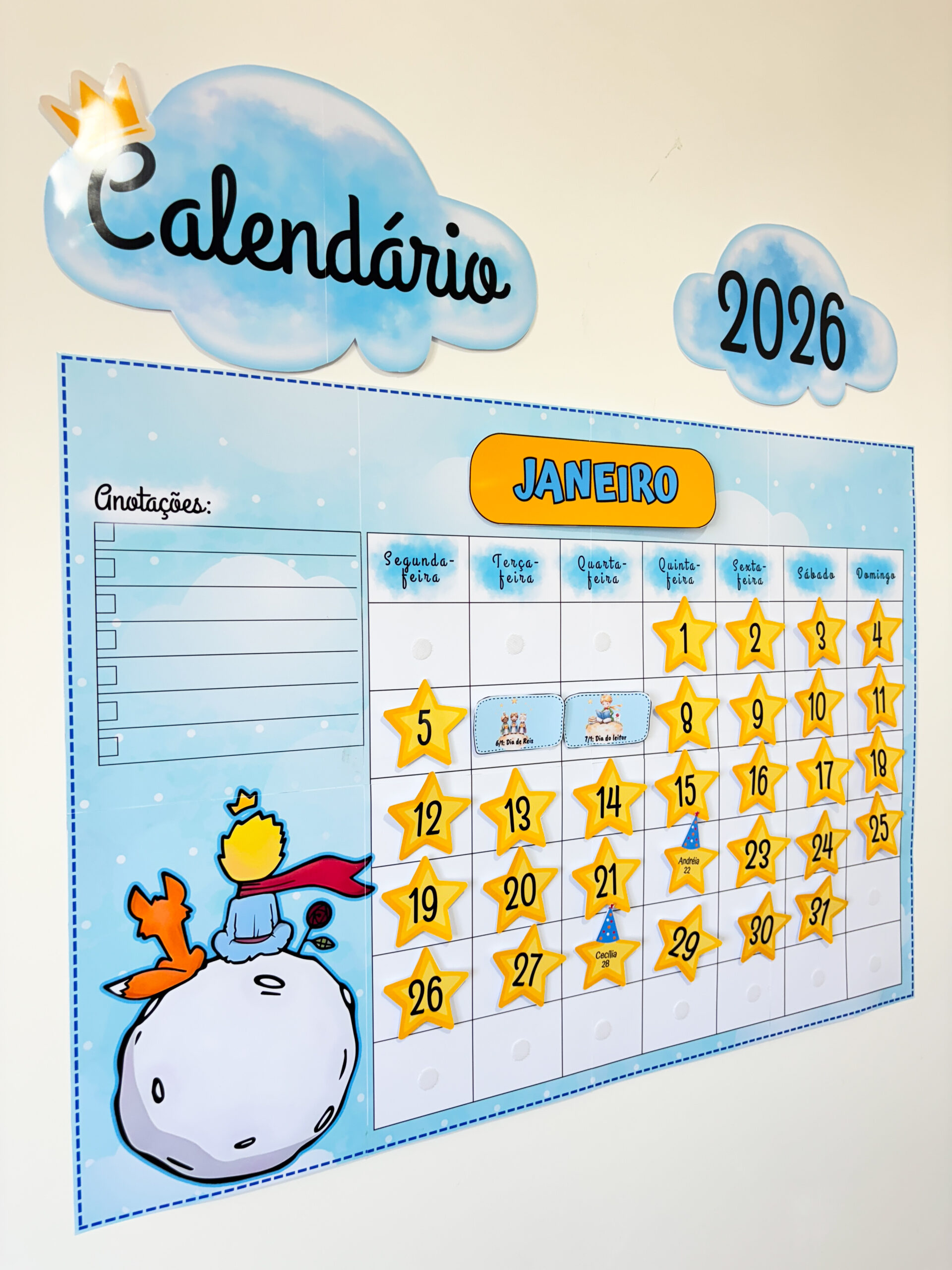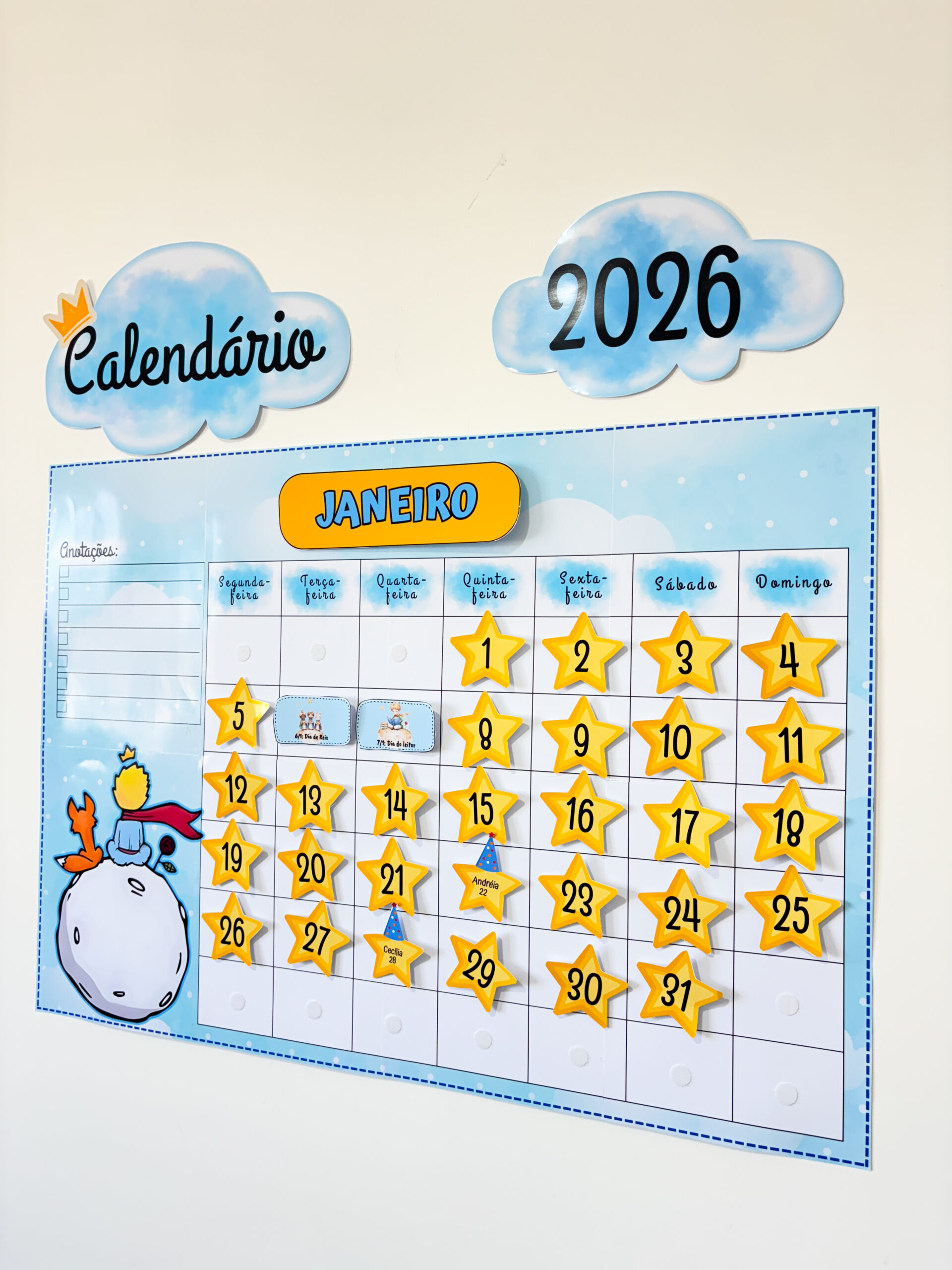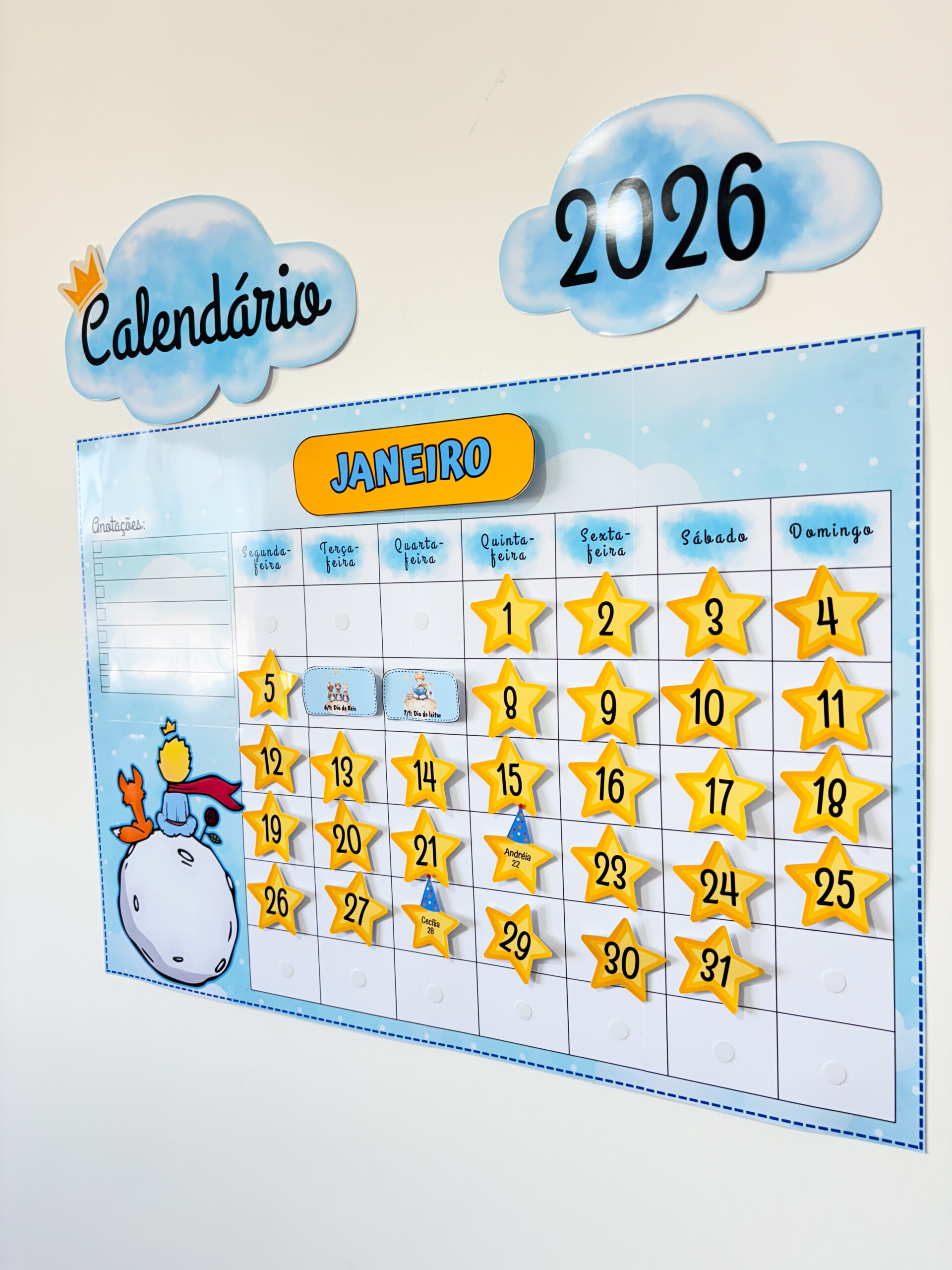 Pensando nisso, criamos este calendário interativo, inspirado no universo do Pequeno Príncipe, para transformar o acompanhamento do ano em um momento significativo com a turma.