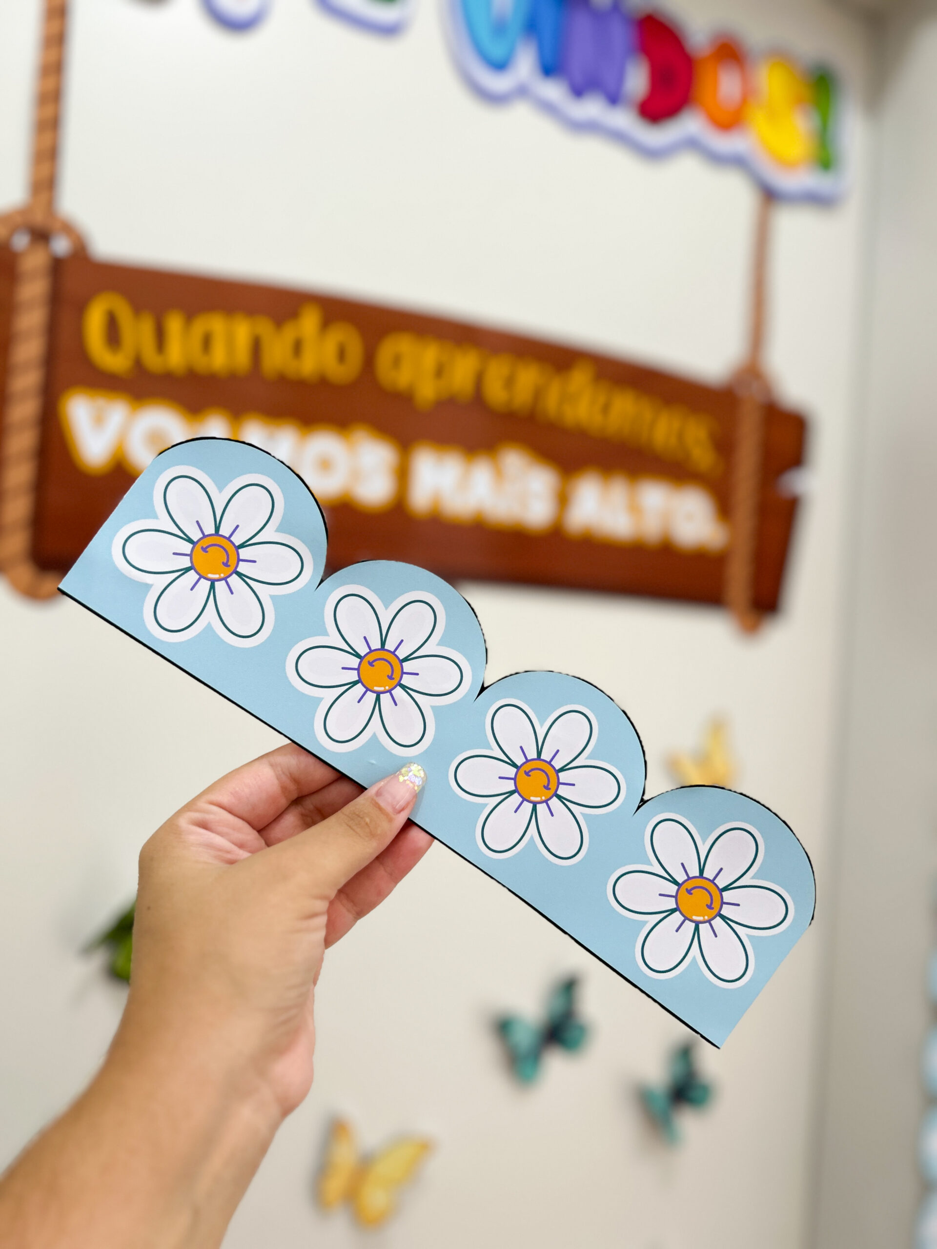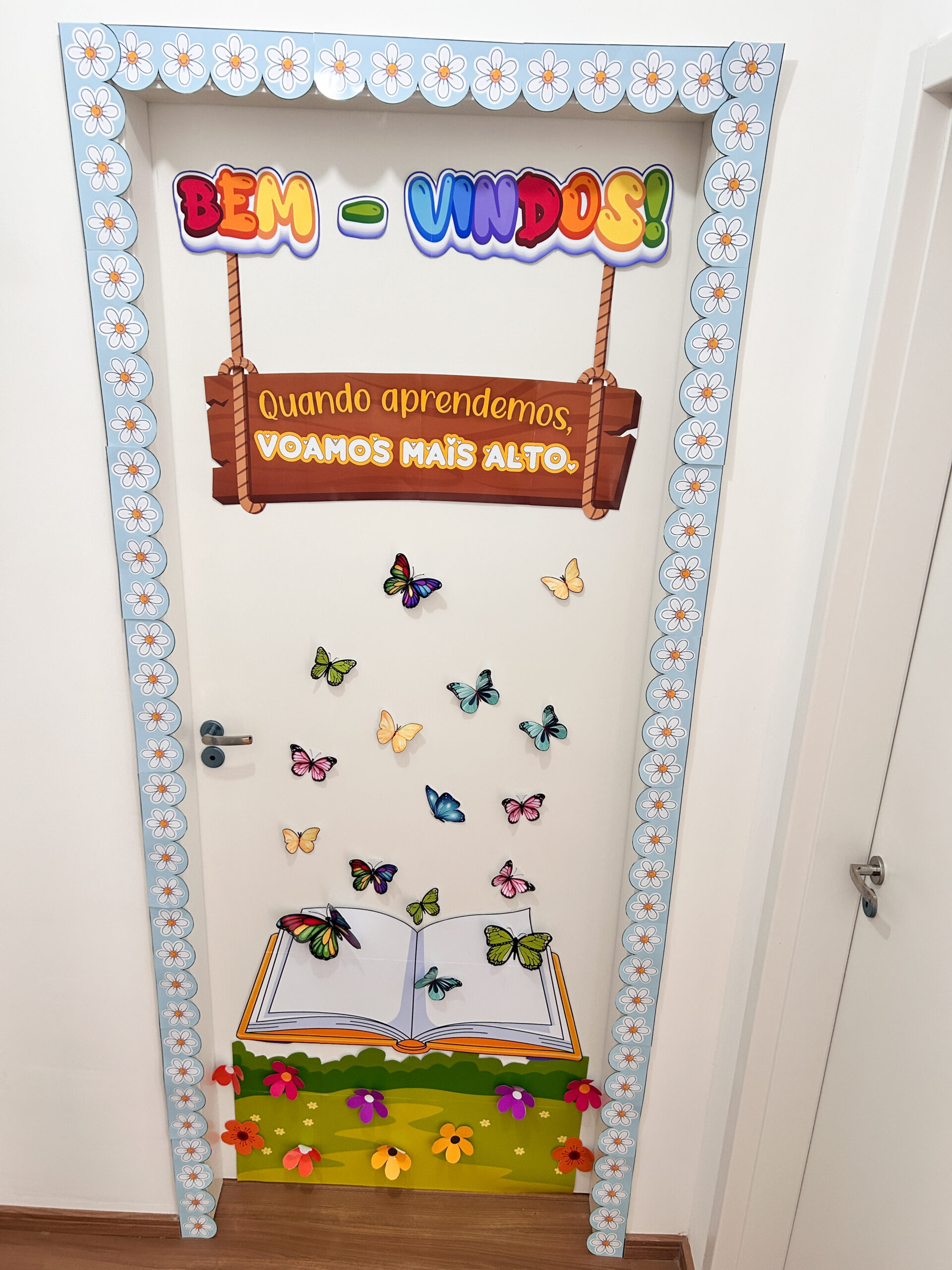 Este painel foi criado para transformar a entrada da sala de aula ou da biblioteca em um convite visual ao aprendizado, à leitura e ao pertencimento. Um painel que recebe, abraça e comunica que aquele espaço foi pensado com cuidado.