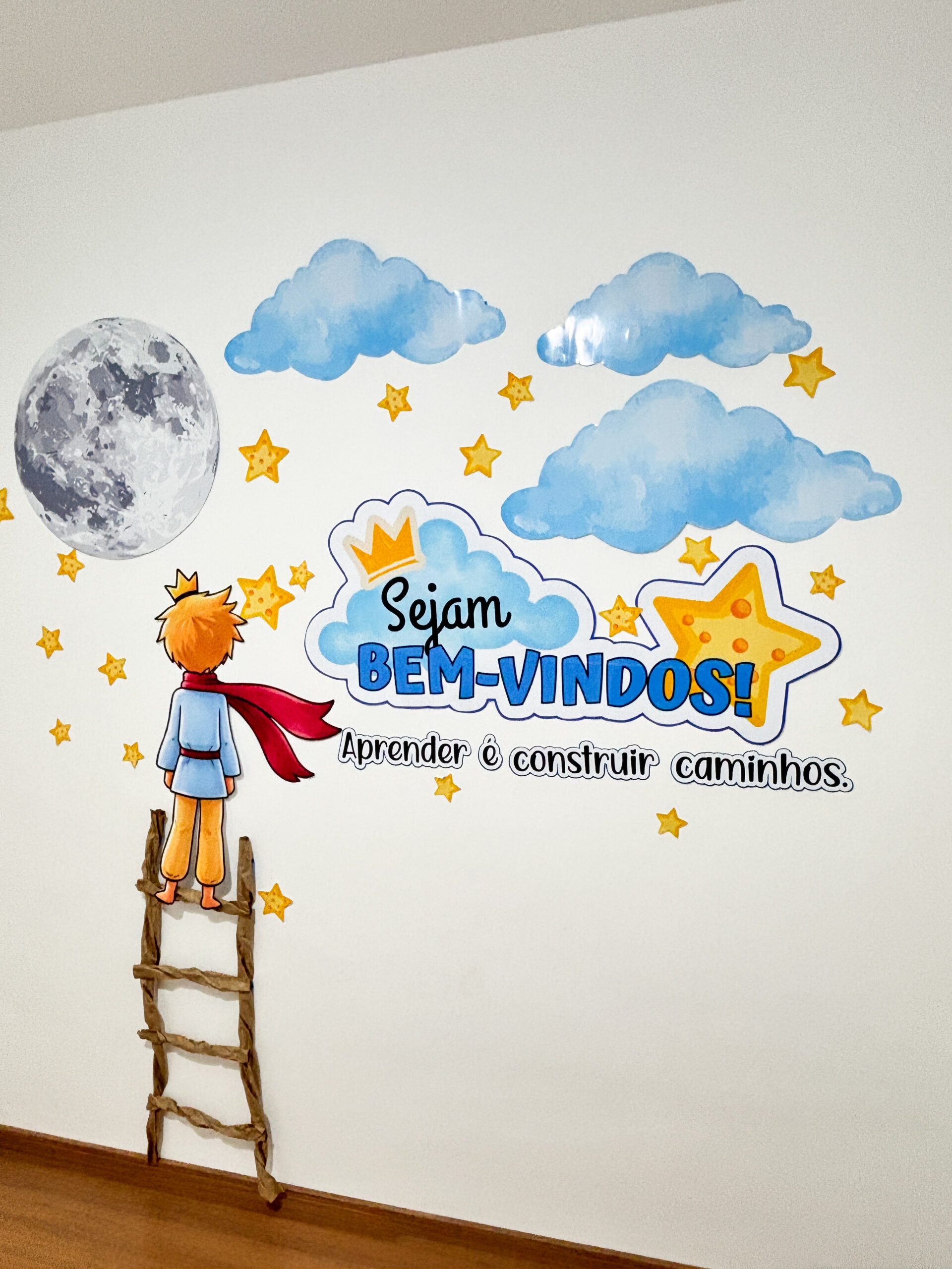 Um painel que transforma qualquer parede em um cenário encantador de acolhida. Perfeito para recepcionar os alunos com um visual marcante e uma mensagem que inspira: “Aprender é construir caminhos.”